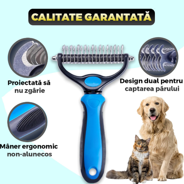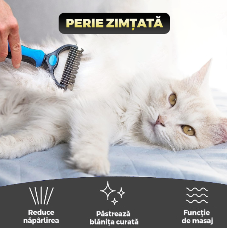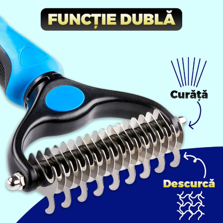 Functie Dubla de Curatare si Descurcare: Datorita designului sau inovator, peria zimtata nu numai ca indeparteaza firele de par in exces, dar si descurca si netezeste blana. Astfel, veti obtine un aspect sanatos si stralucitor pentru animalul dvs.