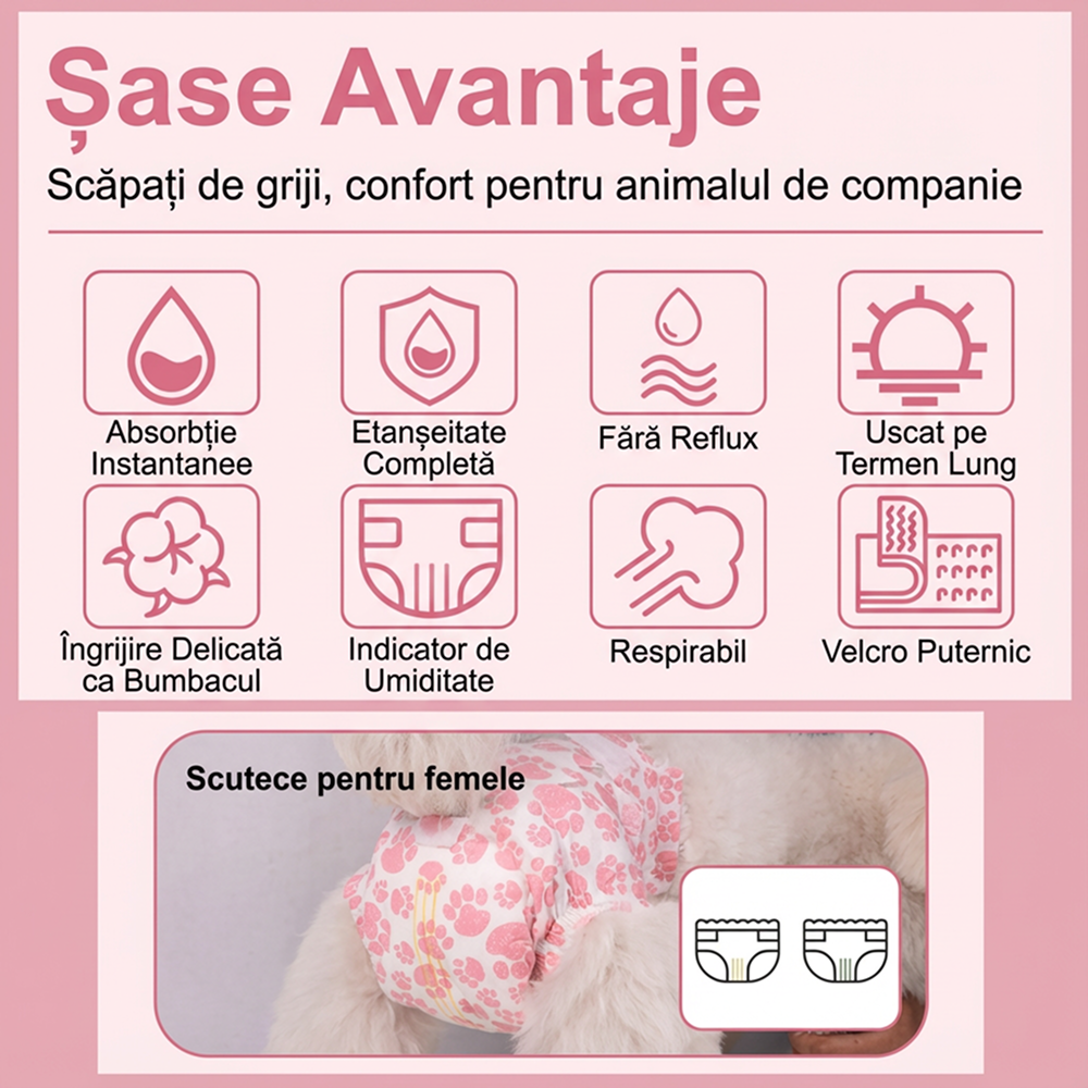 Un accesoriu esențial pentru îngrijirea câinilor femele, oferind protecție și igienă zilnică.