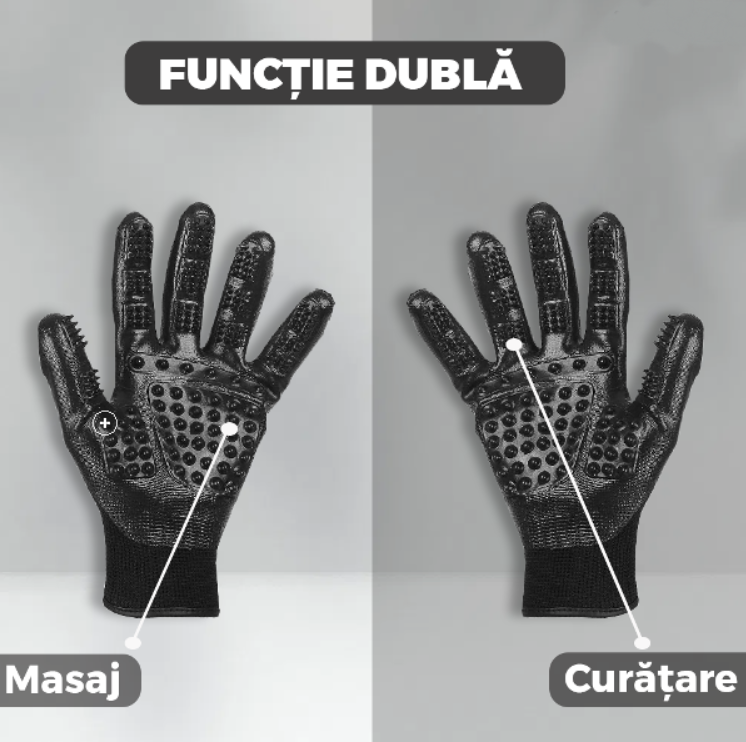Manusile sunt concepute pentru a oferi animalului tau o experienta placuta de masaj. Suprafata din cauciuc moale a manusii are nastiute sau texturi, care vor stimula pielea animalului si il vor face sa se simta relaxat si confortabil in timpul periajului. Aceasta functie de masaj nu numai ca ii va face pe animale sa se bucure de proces, dar si sa imbunatateasca circulatia sangelui si sa mentina pielea sanatoasa.