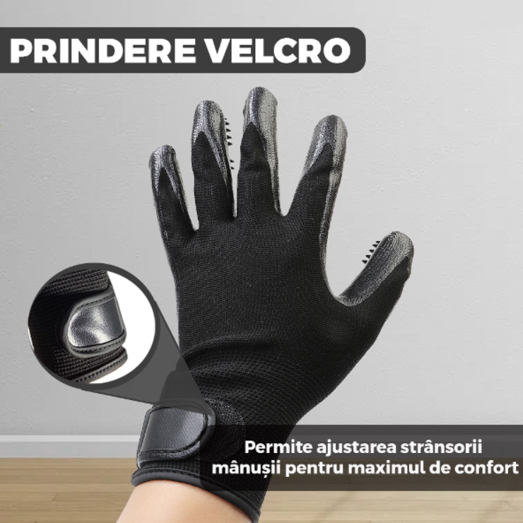 Manusile sunt echipate cu numeroase puncte fine pe suprafata lor, care sunt proiectate pentru a captura si indeparta parul, blana sau pielea moarta de pe animalul tau de companie. Cu fiecare miscare de periaj, aceste manusi eficiente aduna firele de par si le retin ferm. Acest lucru face curatarea mult mai usoara si mai eficienta, reducand riscul ca parul sa ajunga pe mobila sau in aer.