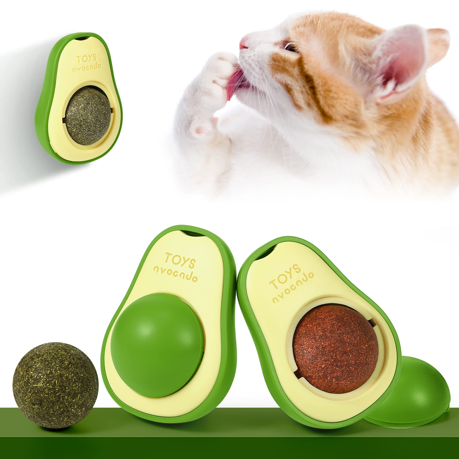 Set 2 mingi cu catnip pentru pisici, model avocado, cu suport adeziv pentru montare pe perete, galben
