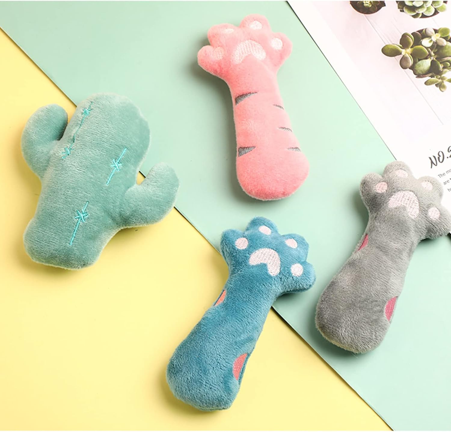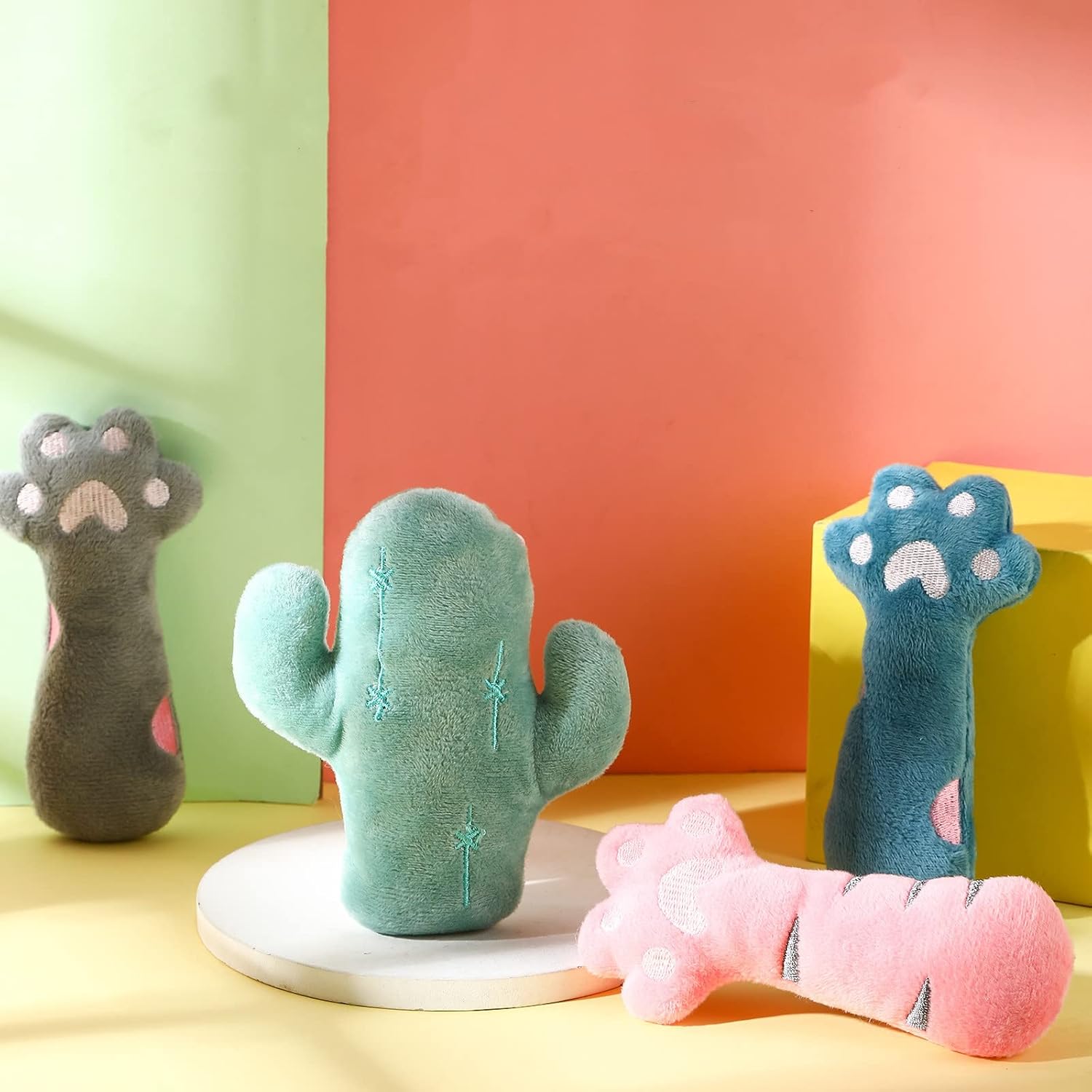 Set 4 jucării pentru pisici – cactus & lăbuță, jucării interactive pentru joacă și stimulare